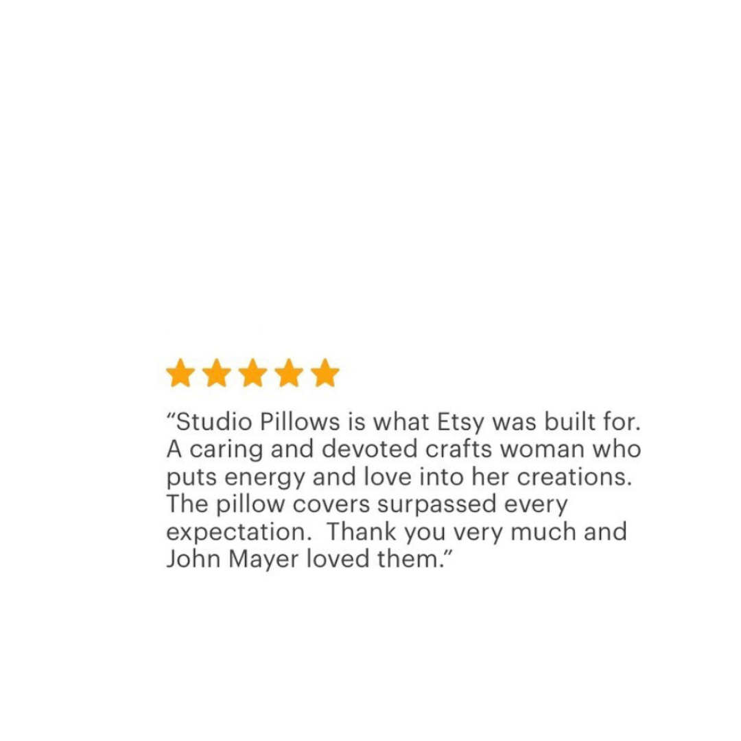 Studio Pillows is what Etsy was built for. A caring and devoted crafts woman who puts energy and love into her creations. The pillow covers surpassed every expectation. Thank you very much and John Mayer loved them.